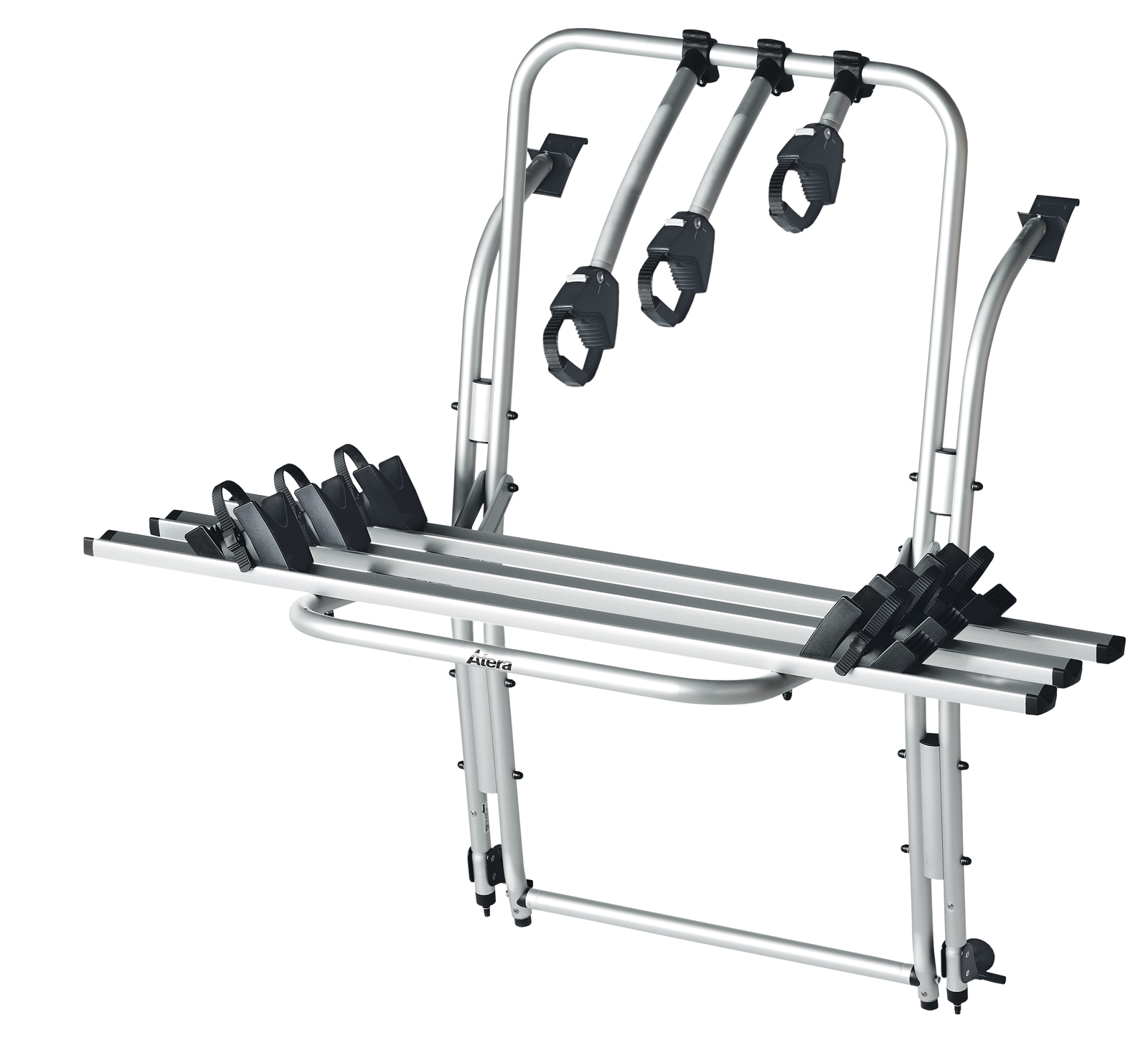 Fahrradträger Fahrradträger sind die häufigste Form von Heckklappenträgern. Heckklappenträger für Fahrräder ermöglichen den sicheren Transport von ein bis vier Fahrrädern. Einige Heckklappenträger-Modelle bieten abschließbare Halterungen, um die Fahrräder vor Diebstahl zu schützen. Von dem Hersteller Atera gibt es die Atera Linea Heckklappenträger für VW Transporter T6. Der Komplettträger ist Ideal für Fahrradintusiasten die drei Fahrräder in den Urlaub mitnehmen möchten.