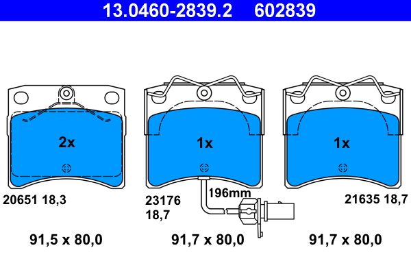 ATE Bremsbelagsatz, Scheibenbremse 13.0460-2839.2