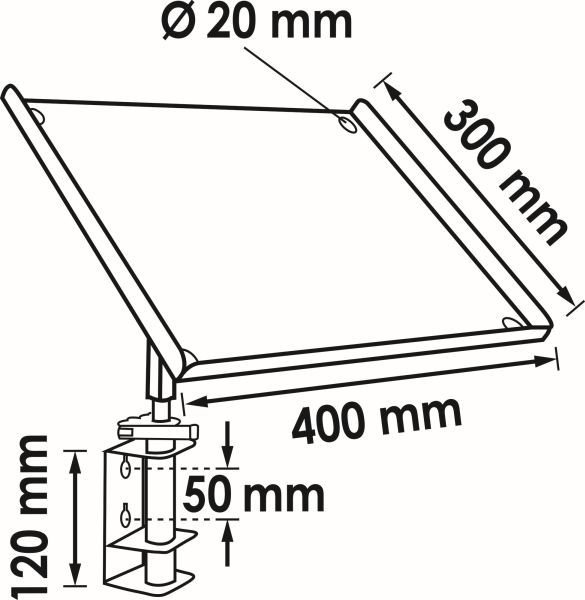 •Passend für alle Serien Bj. 07/2019 → (mit vier Gewindehülsen) •Schwenk-, und arretierbar •360° drehbar •Frontale und seitliche Abkantung schützt das Gerät vor Sturz •Ablagefläche lässt sich auf die gewünschte Neigung einstellen •Vier Zusatzlochungen zum Durchführen von Kabeln
