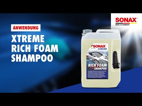 Stark verschmutzte Fahrzeuge vorher vom Grobschmutz befreien. Mit HD-Gerät und Schaumlanze: Je nach Gerät und Lanze 30-100 ml Shampoo mit 1 l Wasser vorverdünnen und in den Vorlagebehälter der Schaumlanze füllen. Mit Hand-Schaumsprüher (z.B. SONAX FoamSprayer 1 l, Art.Nr. 04965410): 10-30 ml Shampoo mit 1 l Wasser im Behälter mischen (je nach Gerät und Düse). Handwäsche: 50 ml Shampoo in 10 l warmem Wasser auflösen und aufschäumen. Fahrzeug von oben nach unten mit einem Schwamm waschen, Shampoo nicht antrocknen lassen. Anschließend mit klarem Wasser gründlich abspülen und abledern.