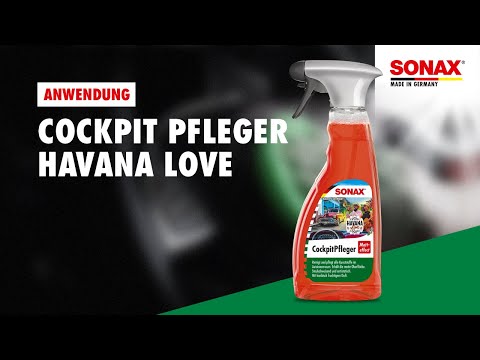 Vor Gebrauch schütteln. SONAX CockpitPfleger Matteffect Havana Love auf ein SONAX MicrofaserPflegePad oder ein weiches fusselfreies Tuch sprühen. Die zu behandelnden Oberflächen gleichmäßig abreiben und trocknen lassen. Nicht anwenden auf erhitzten Oberflächen, Leder, Lenkrad, Pedalen, Scheiben, Radios und Navigationsgeräten.