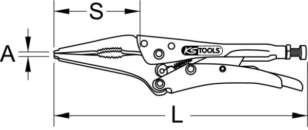 •geschmiedete Greifbacken •gezahnte Ausführung •Größenjustierung durch Einstellrad •mit Lösehebel •mit Feststellarretierung •für rundes und flaches Material •zum Halten bei Schweißarbeiten •kein Aufweiten unter stärkster Belastung •Lösehebel unter ständigem Druck einer Feder •vernickelt •Chrom Vanadium